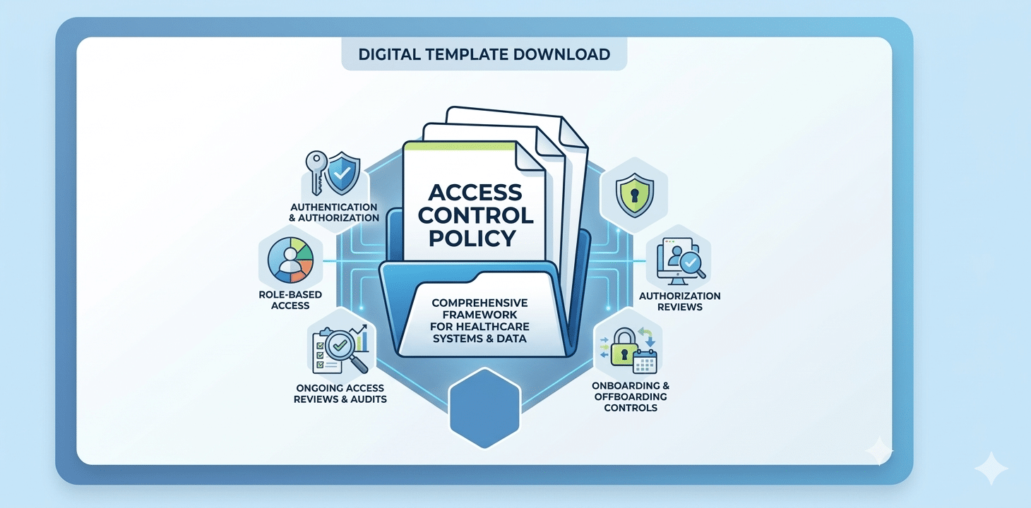 This template works well for covered entities, business associates, and healthcare vendors that need a formal access governance document. It is particularly useful for compliance officers, IT teams, and small-to-midsize practices building or updating their HIPAA Security Rule policy library.