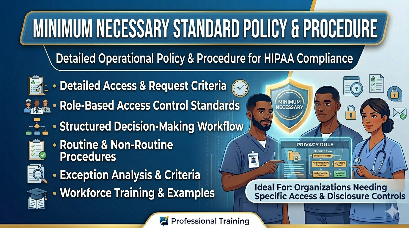 Privacy officers and compliance teams at covered entities including physician practices, hospitals, health plans, and behavioral health providers that need to formalize their minimum necessary implementation as part of a Privacy Rule compliance program.