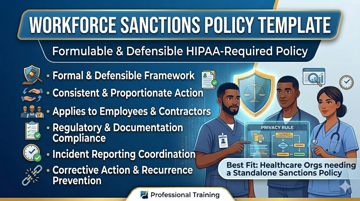 The HIPAA Workforce Sanctions Policy Template gives you a complete, editable disciplinary framework that satisfies the requirements at 45 CFR 164.530(e) and 45 CFR 164.308(a)(1). It covers the full range of violation categories and provides a graduated response structure that your HR and compliance teams can apply consistently across incidents.
